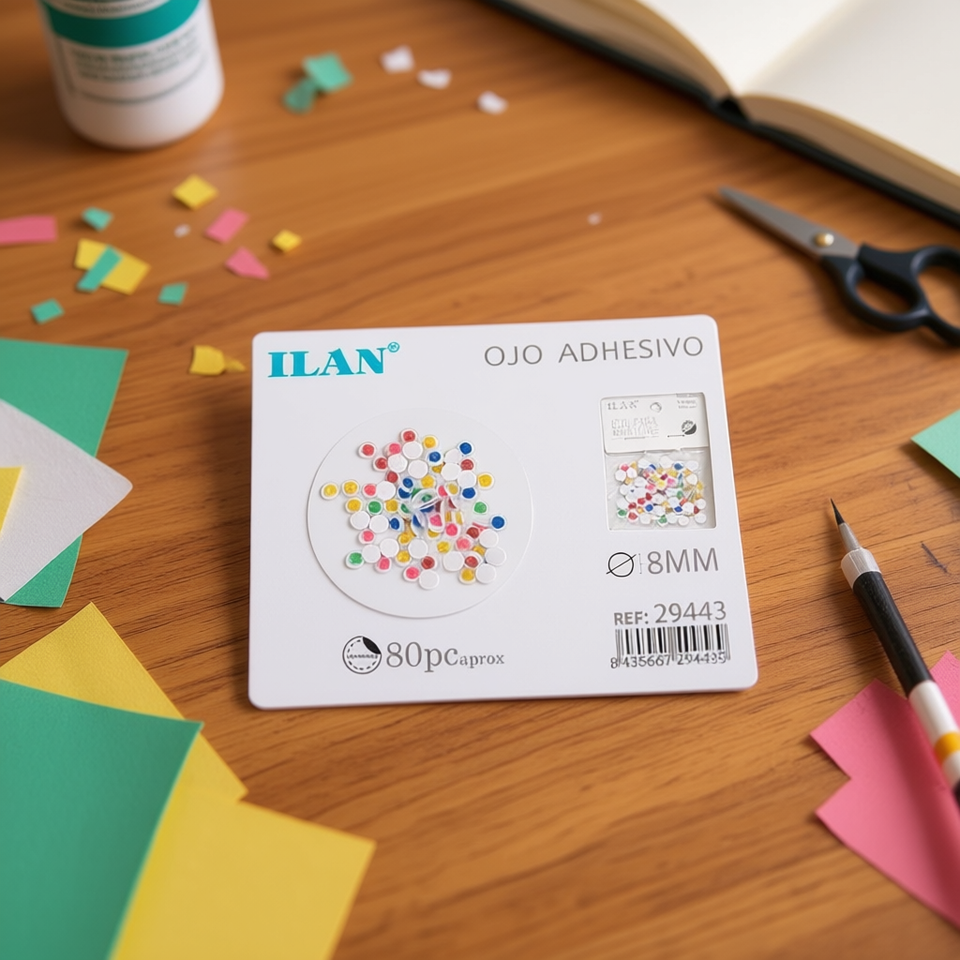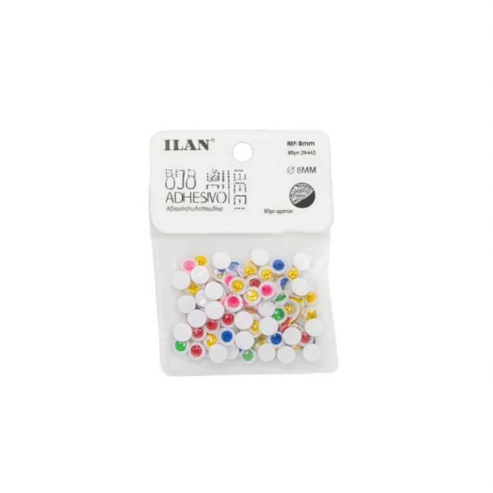 Occhi adesivi ILAN da 8 mm colorati per lavori artigianali, circa 80 pezzi