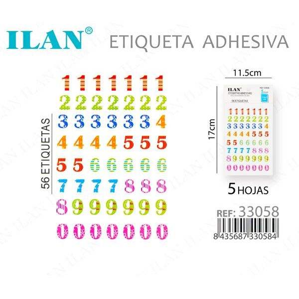 Etichette Adesive ILAN 11,5x17cm 56 Etichette 5 Fogli Numeri Colorati per Etichette di Abbigliamento