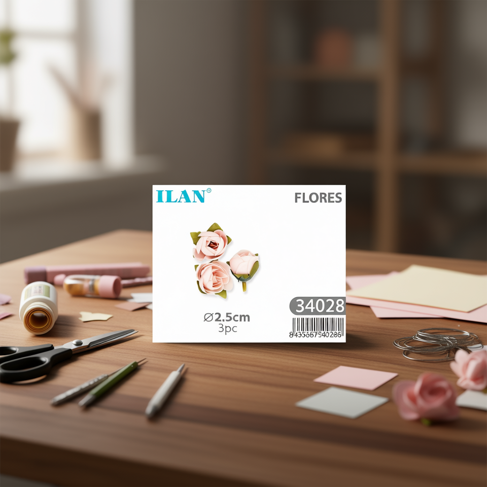 Fiori Artificiali ILAN, Rose Rosa da 2,5 cm, Set da 3 Pezzi per Decorazioni