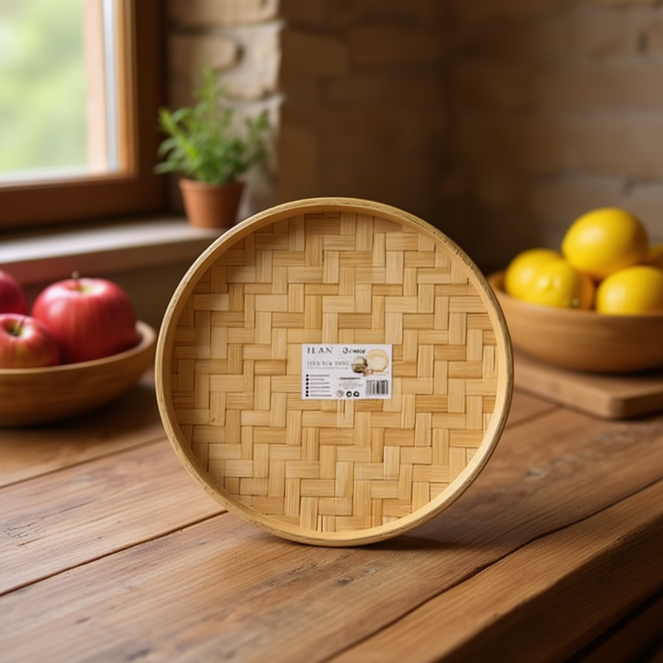 Vassoio in bambù ILAN 18 cm rotondo, intreccio naturale, piatto da portata, modello Cina 29505