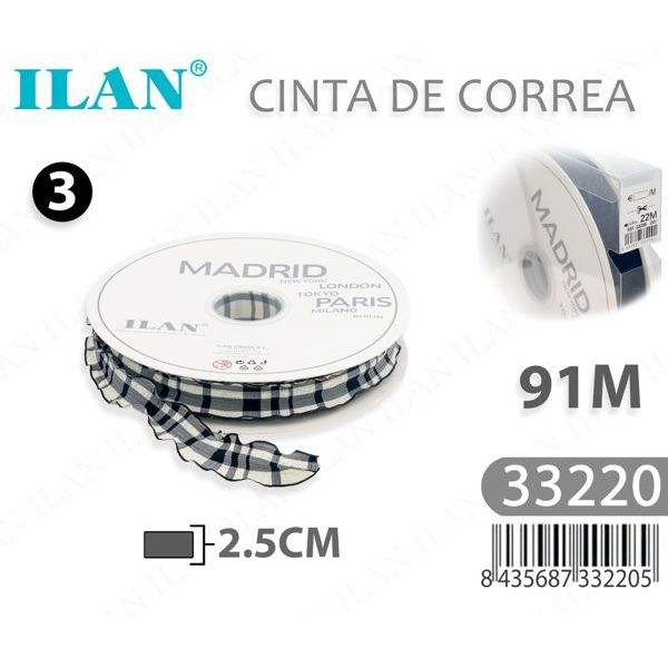 ILAN Nastro Decorativo 2.5Cm 91M con Motivo a Quadri Madrid per Artigianato e Decorazione