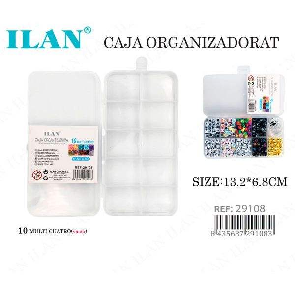 Scatola organizer in plastica trasparente ILAN con 10 scomparti 13,2x6,8 cm per la conservazione di perline