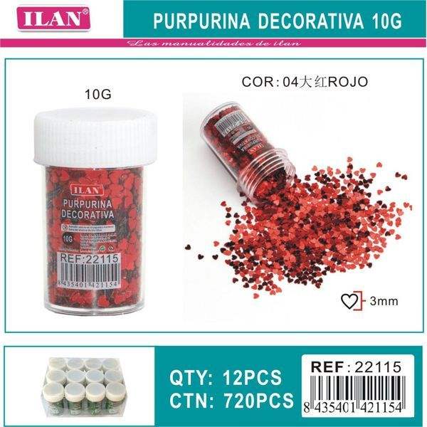 Glitter Decorativo ILAN 10G Rosso 3mm per Artigianato