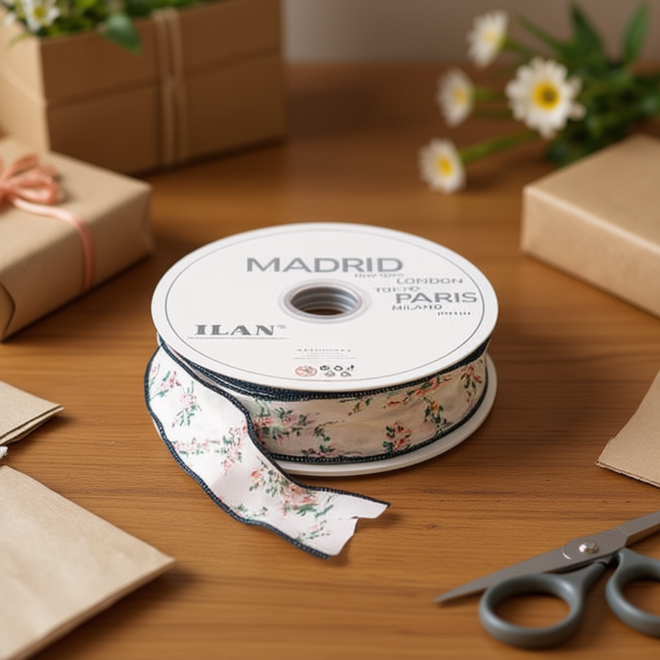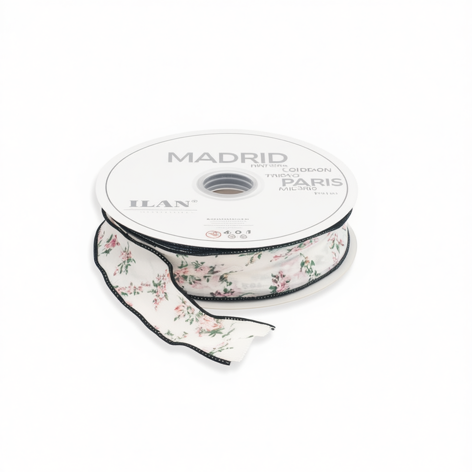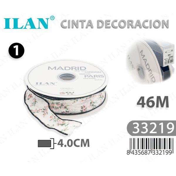Nastro Decorativo ILAN 4.0Cm 46M con Motivo Floreale per Artigianato e Confezioni Regalo