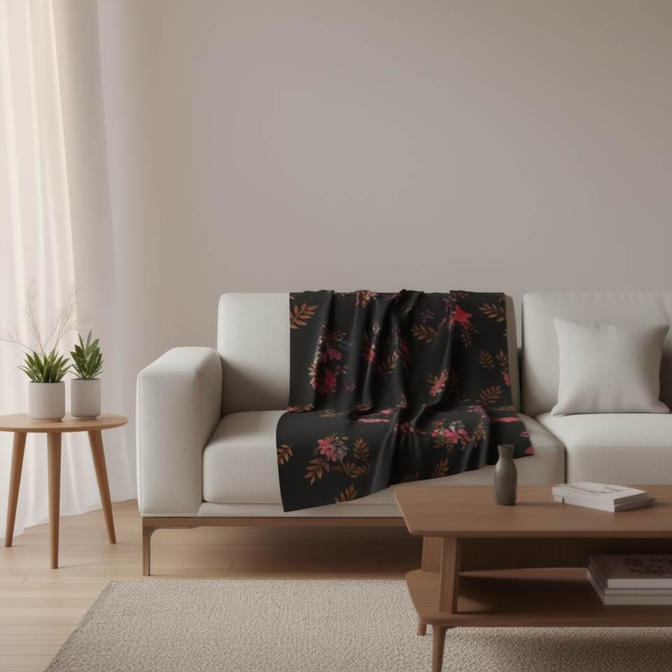 Accessorio in Tessuto ILAN 100cmx150cm Stampa Floreale Nera per Arredamento Casa