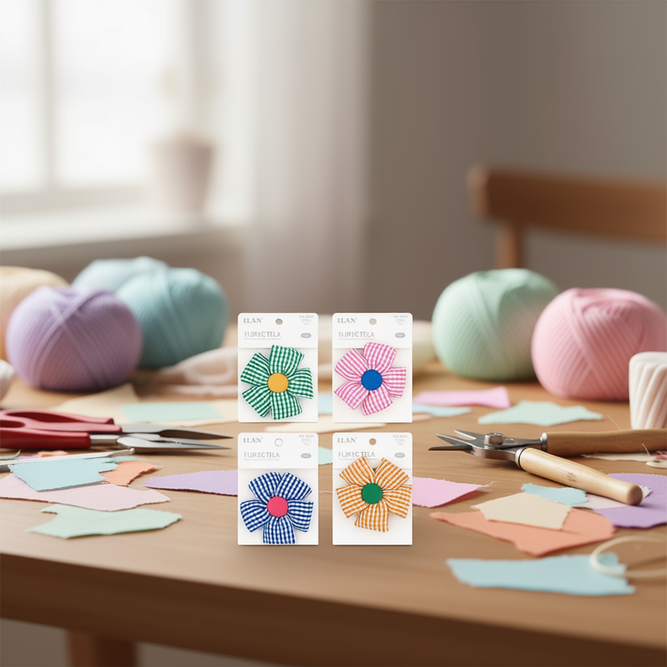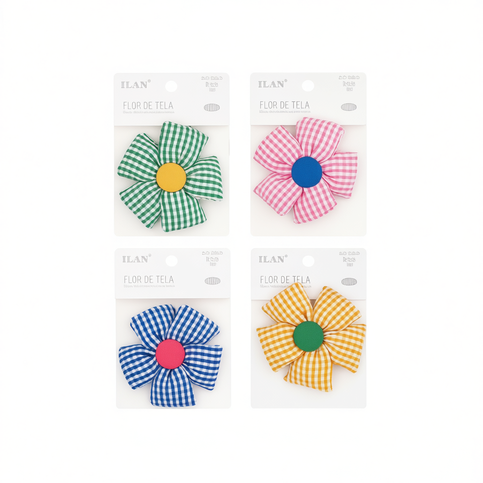 Fiori in Tessuto ILAN 8,5cm con Motivo a Quadretti, Accessorio Decorativo per Artigianato