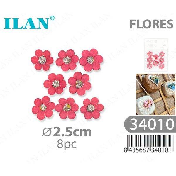 Applicazione floreale ILAN da 2,5 cm, fiore rosa con centro in strass per lavori artigianali