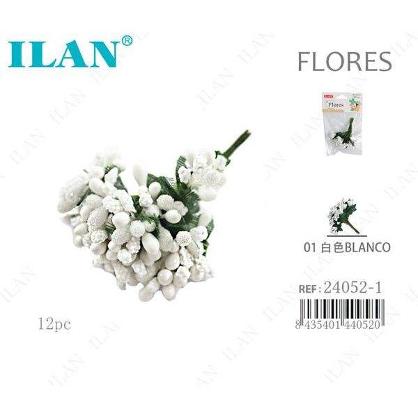 ILAN Fiori Bianchi Artificiali, Set di 12 Pezzi, Composizione di Fiori Secchi per Decorazione
