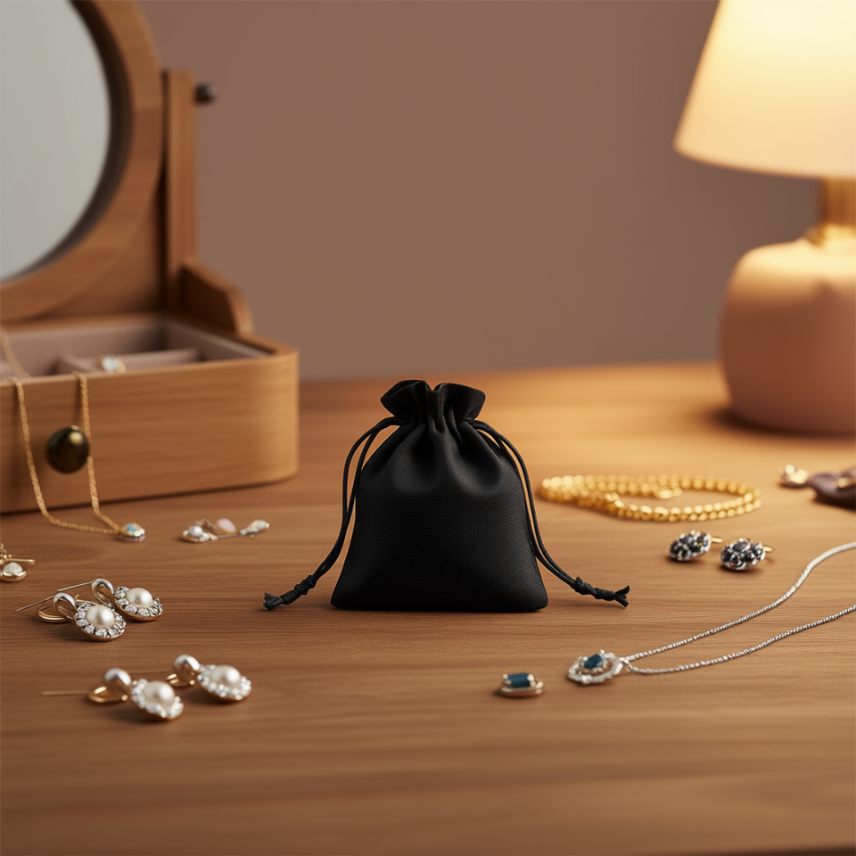 Sacchetto regalo ILAN 15x20cm nero con coulisse per la conservazione di gioielli