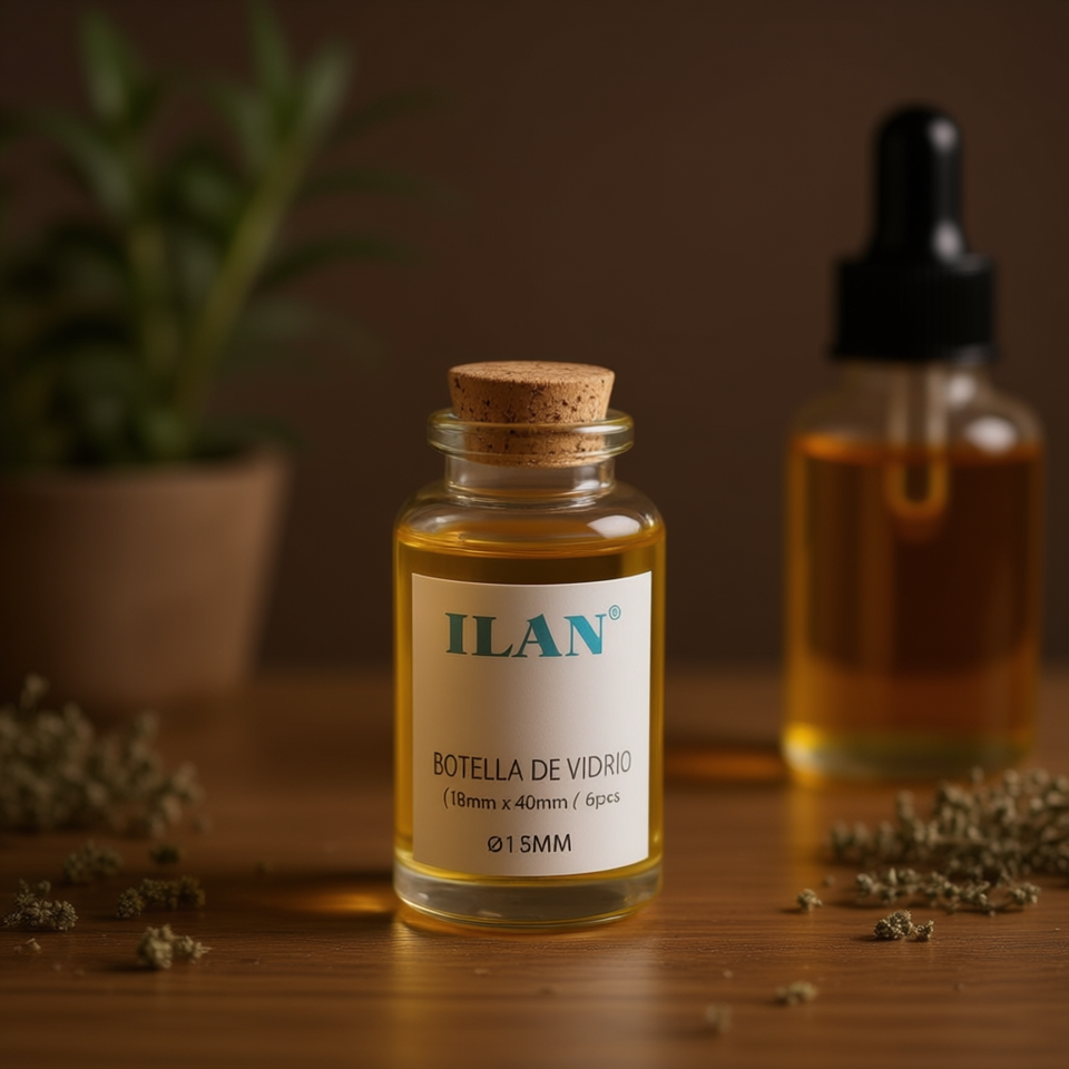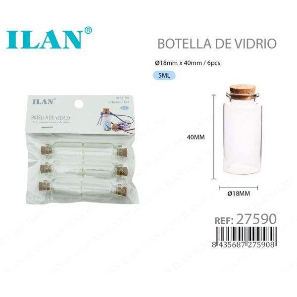 Bottiglia in vetro ILAN con tappo in sughero 18mm X 40mm 5ml per oli essenziali e profumi