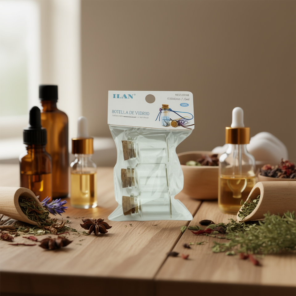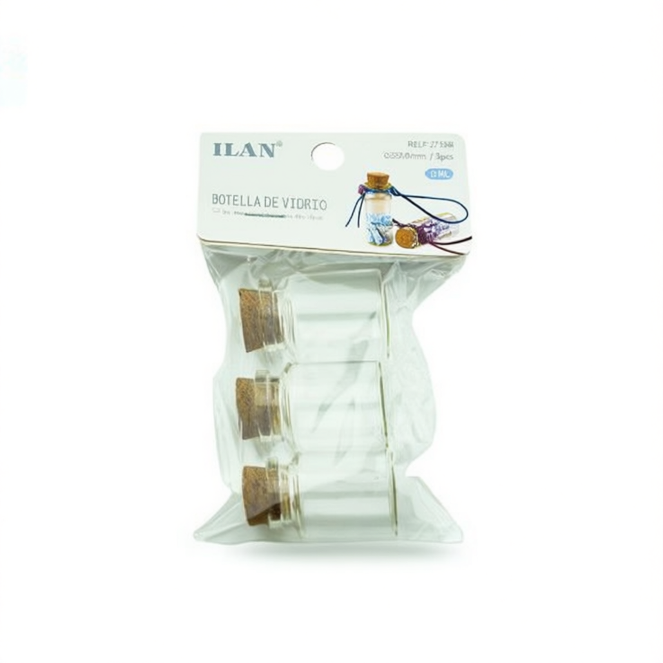 Bottiglia in Vetro ILAN con Tappo in Sughero 30mm X 40mm 15Ml per Oli Essenziali