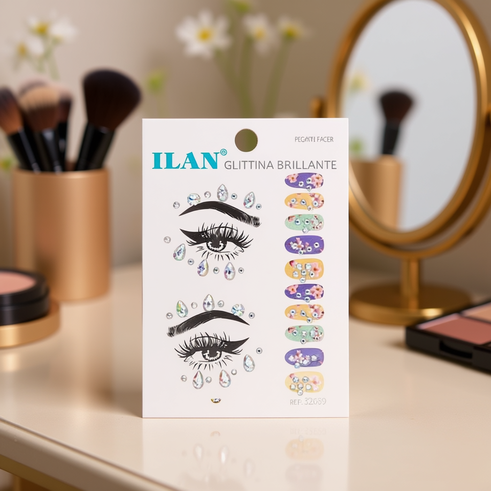 Adesivi Glitterati ILAN per Viso, Occhi e Unghie - Decalcomanie Brillanti Ref 32639