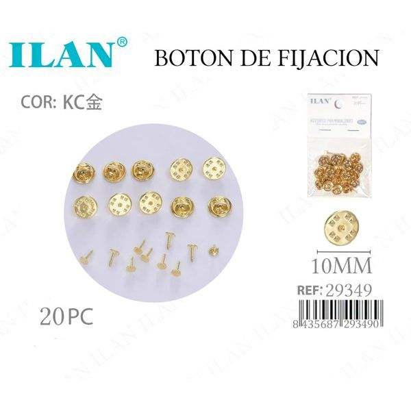 Bottone di fissaggio in oro ILAN da 10 mm, 20 pezzi, per abbigliamento