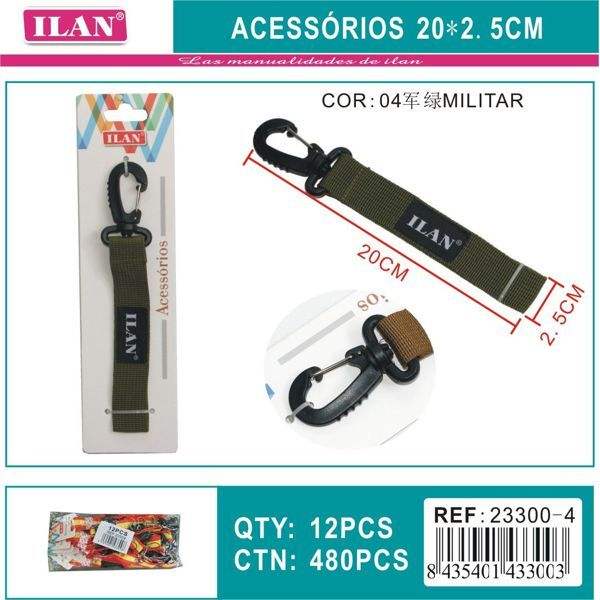 Portachiavi ILAN 20x2,5 cm con Moschettone Verde Militare e Cinturino Accessorio
