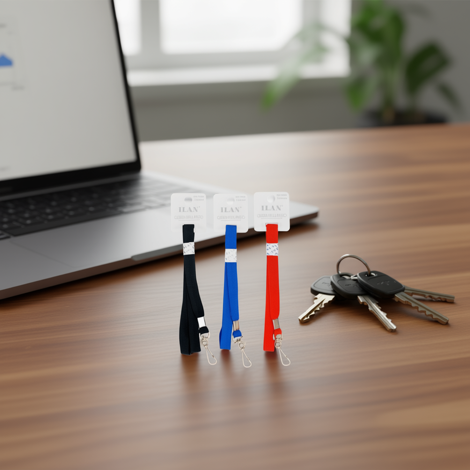 Cinturino portachiavi ILAN 1,2x45 cm in nylon con gancio in metallo per chiavi e tessere identificative