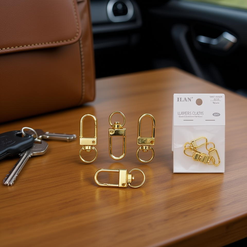 Moschettoni Portachiavi ILAN 30mm Placcati Oro 4 Pezzi Stile Porta