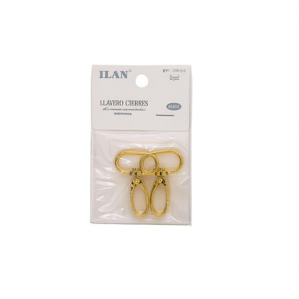 Moschettoni Portachiavi Ilan 45mm Placcati Oro Tipo Gancio Staccabile in Lega di Zinco Stile Semplice Accessori per Abbigliamento