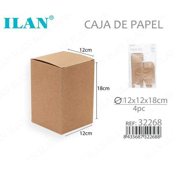 Scatola in Carta Kraft ILAN 12x12x18 Cm Pieghevole Confezione da 4 Pezzi