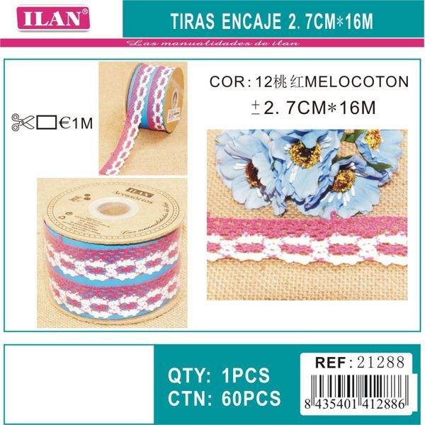 Strisce di pizzo ILAN 2,7 cm x 16 m colore pesca per decorazioni e lavori artigianali
