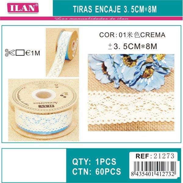 Strisce di pizzo ILAN 3,5 cm x 8 m colore crema per artigianato e cucito