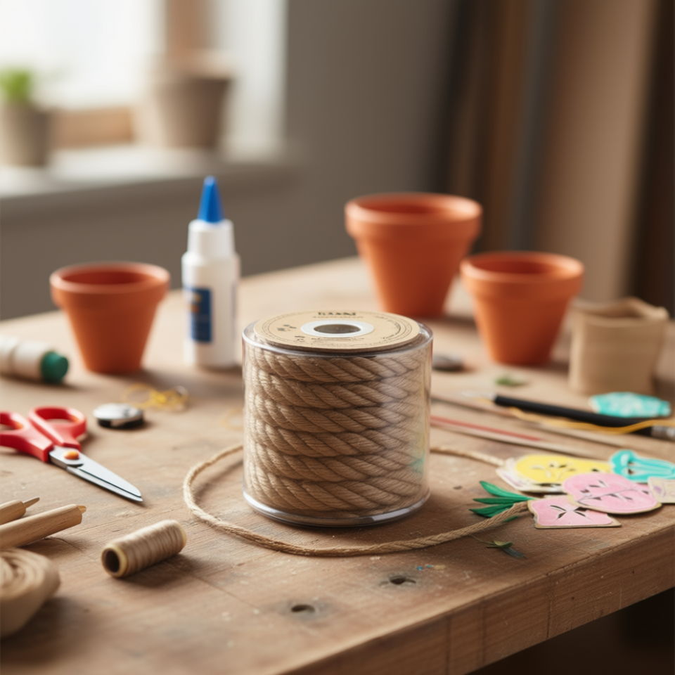 Corda di lino ILAN 12mm x 4m, corda intrecciata naturale per artigianato e decorazioni