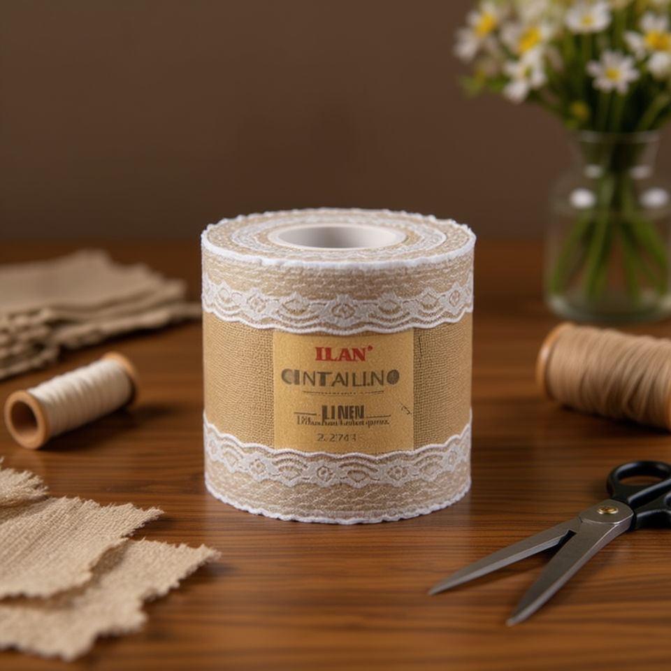 Nastro di lino ILAN 30 cm x 1,8 m con bordo in pizzo per artigianato e decorazioni