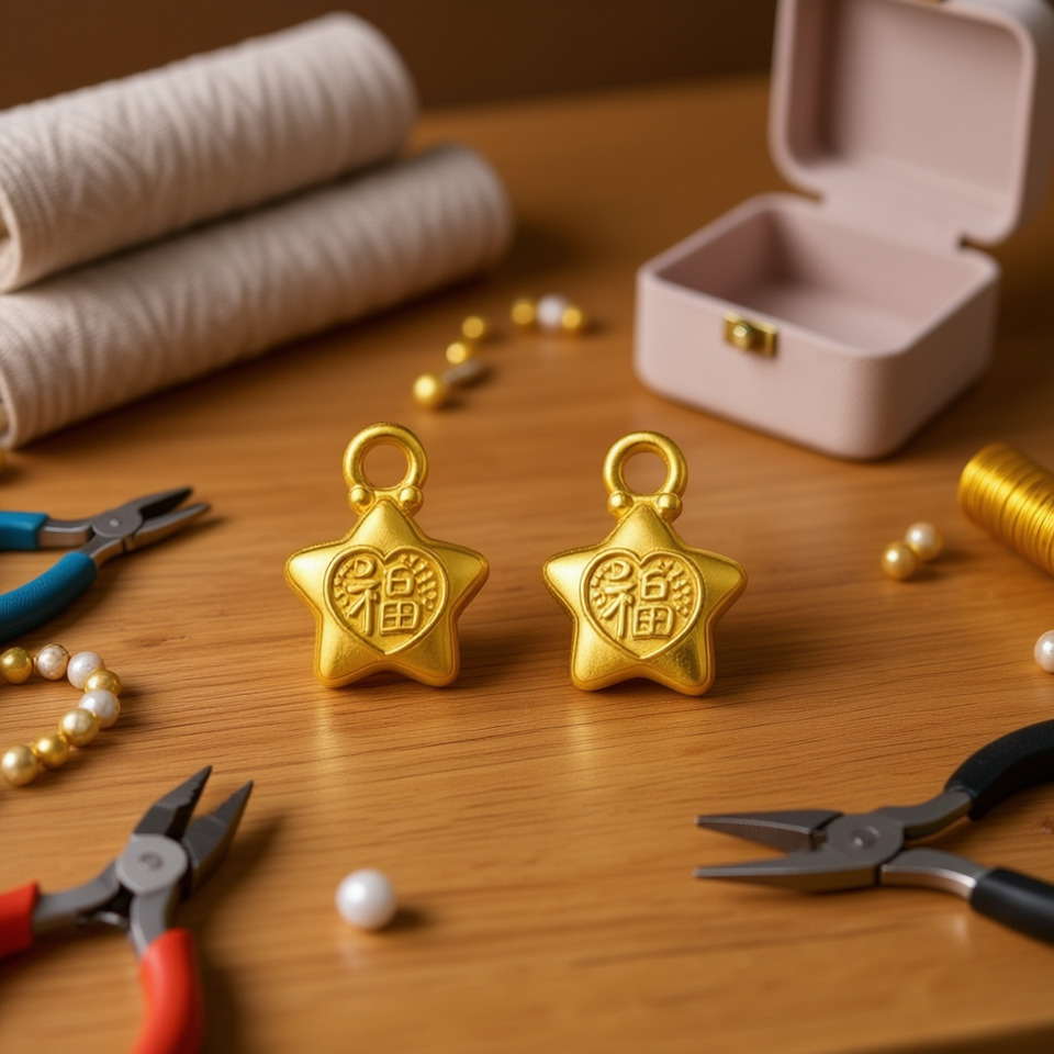Ciondolo ILAN Lucky Star color oro, 2 pezzi, per la creazione di gioielli e accessori