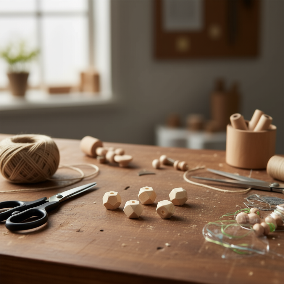 Perline di legno ottagonali ILAN 20 mm colore naturale per artigianato