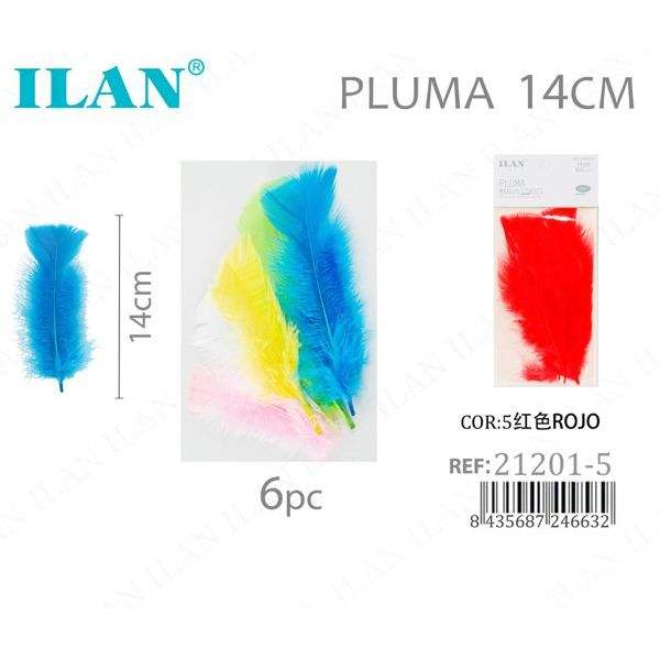 ILAN Set di 6 Piume Decorative Rosse da 14 Cm per Artigianato
