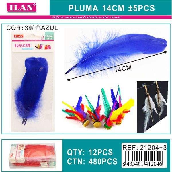Piume Blu ILAN da 14 cm per Artigianato e Decorazioni