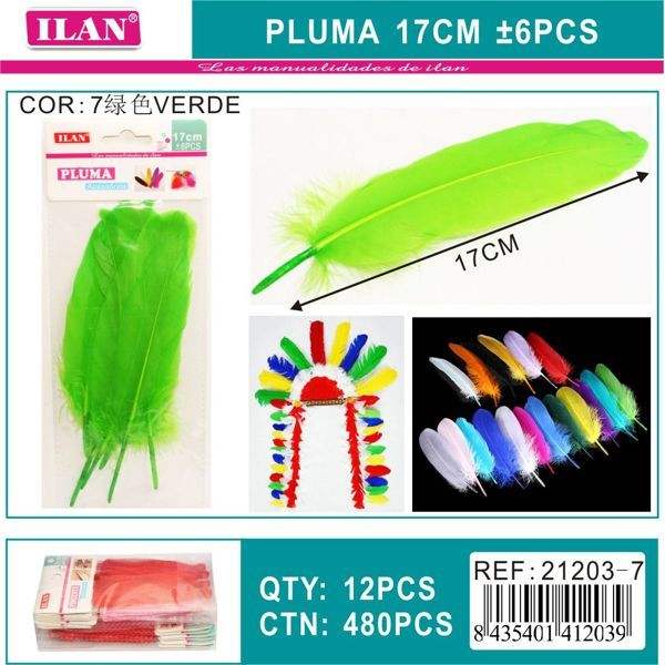 ILAN Pluma 17Cm Verde 6Pezzi Piume Decorative per Decorazioni Fai da Te