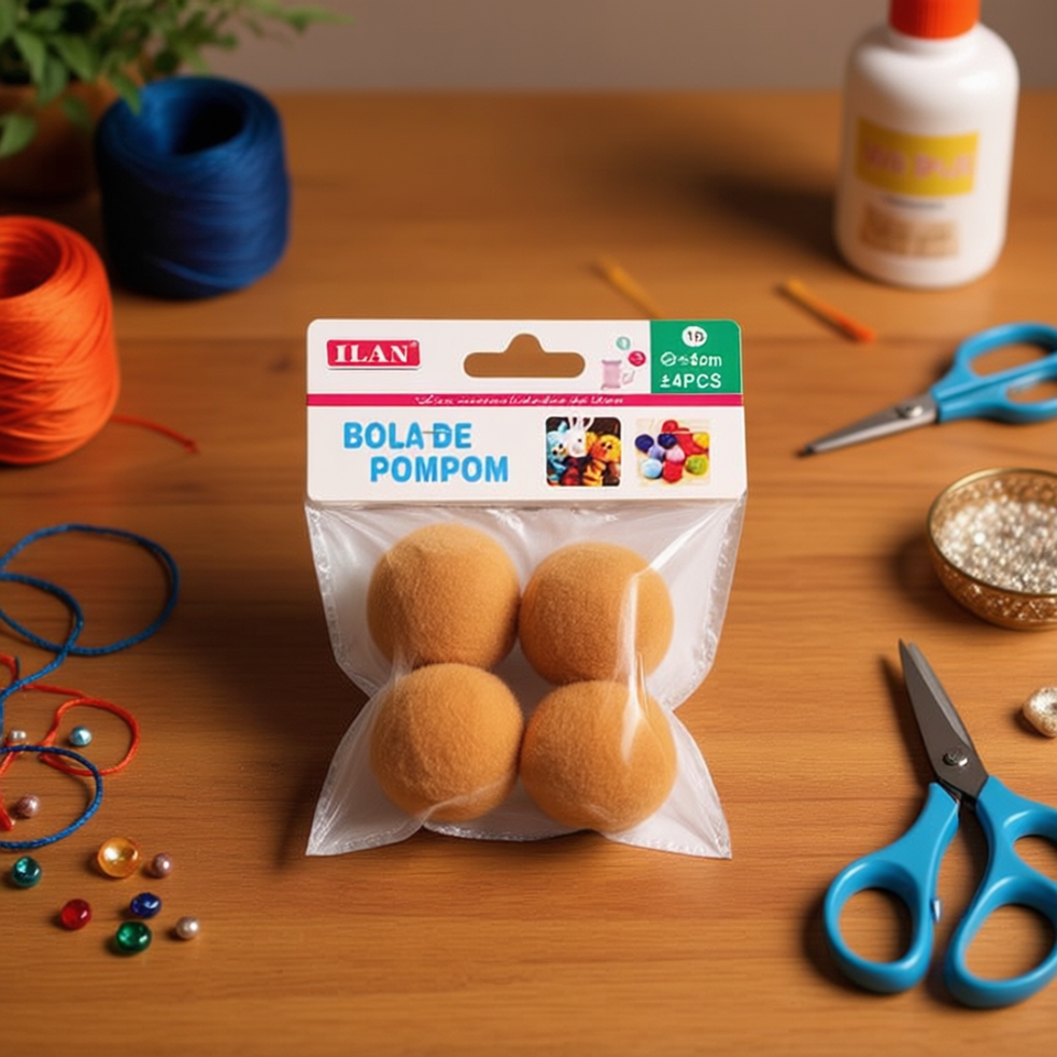 Pompon ILAN 4.0 cm colore cammello, articoli per artigianato e decorazioni fai da te