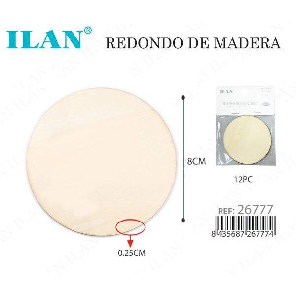Dischi di Legno Rotondi ILAN, Diametro 8cm, Spessore 0,25cm, Confezione da 12 Pezzi, Materiali per Artigianato