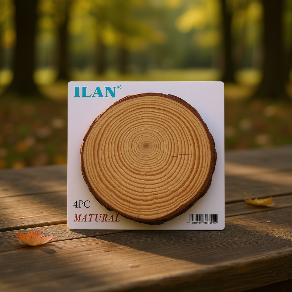 Base Rotonda in Legno ILAN 4-5 Cm, Fetta di Legno Naturale per Artigianato e Decorazioni, Set da 4 Pezzi