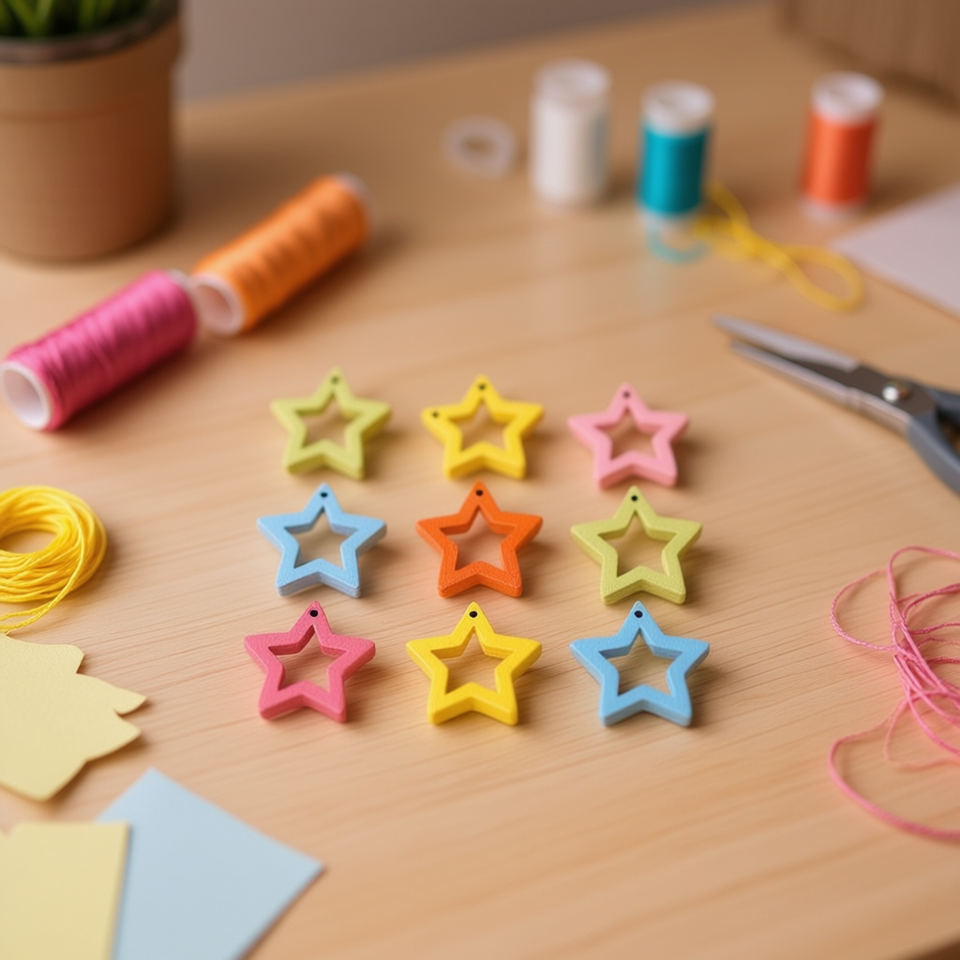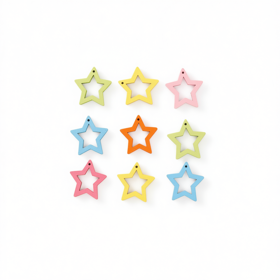 Accessorio in legno a forma di stella ILAN 25mm 9 pezzi per artigianato e decorazione