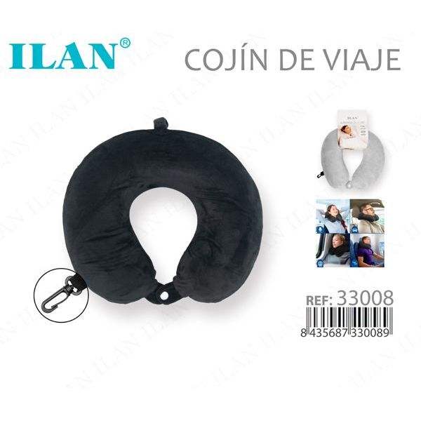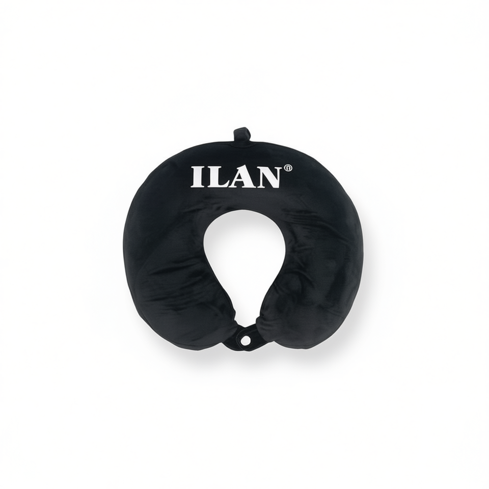 Cuscino da viaggio ILAN con supporto cervicale viscoelastico per viaggi in aereo, auto, autobus, comodo cuscino per dormire, nero