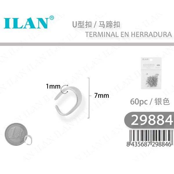 Terminale con fibbia tipo ILAN U da 7 mm color argento per la creazione di gioielli, 60 pezzi