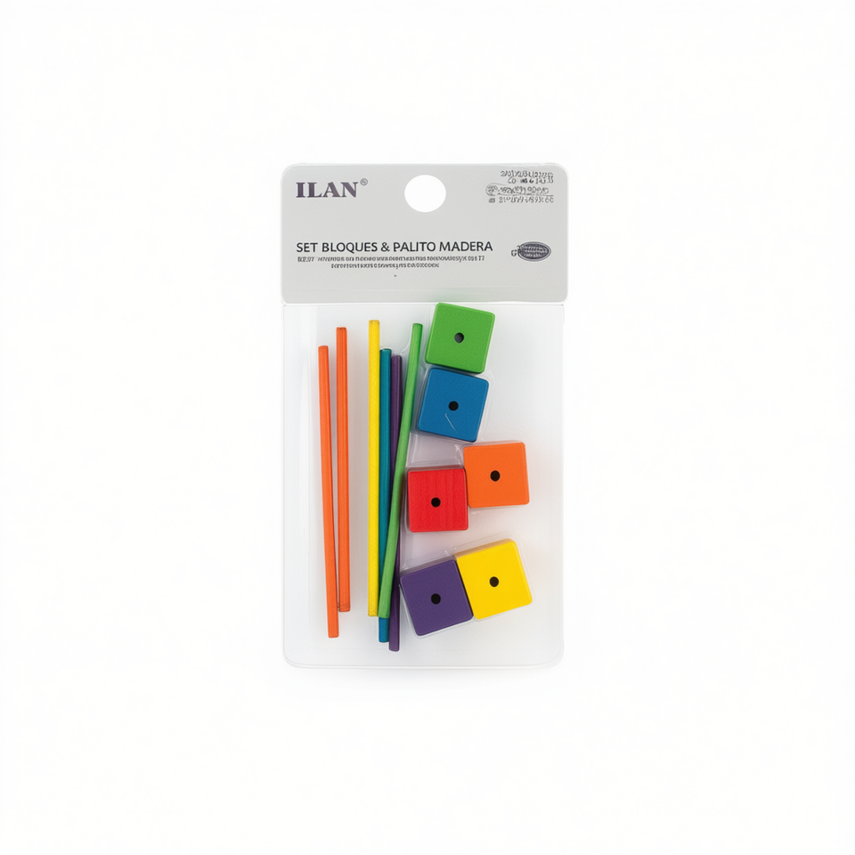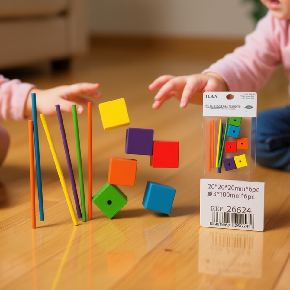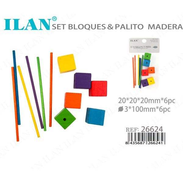Set di blocchi e bastoncini in legno ILAN 20x20x20mm 6 pezzi 3x100mm 6 pezzi Giocattolo da costruzione