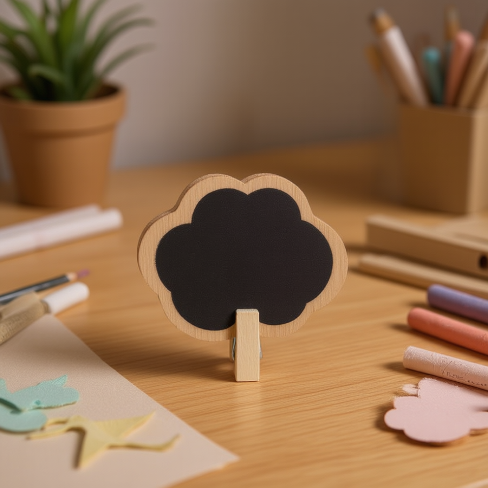 Lavagna in legno ILAN con clip 8,5x8,5 cm a forma di nuvola per artigianato e decorazioni