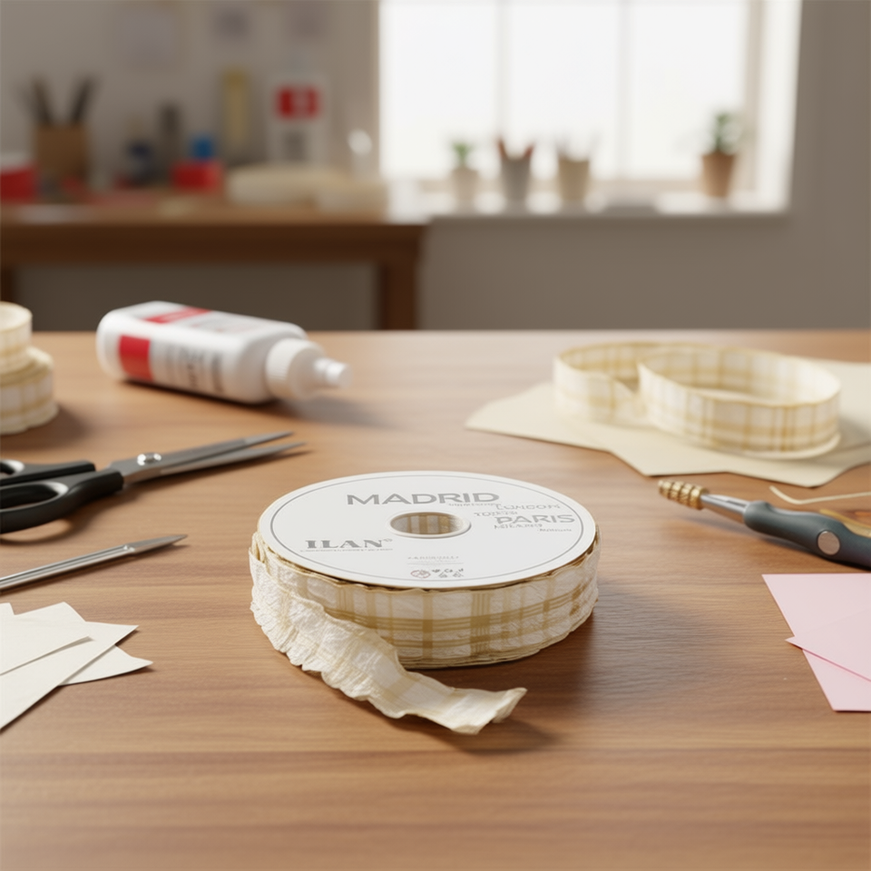 Cinturino Intrecciato ILAN 4.0Cm 91M Nastro Beige a Quadretti
