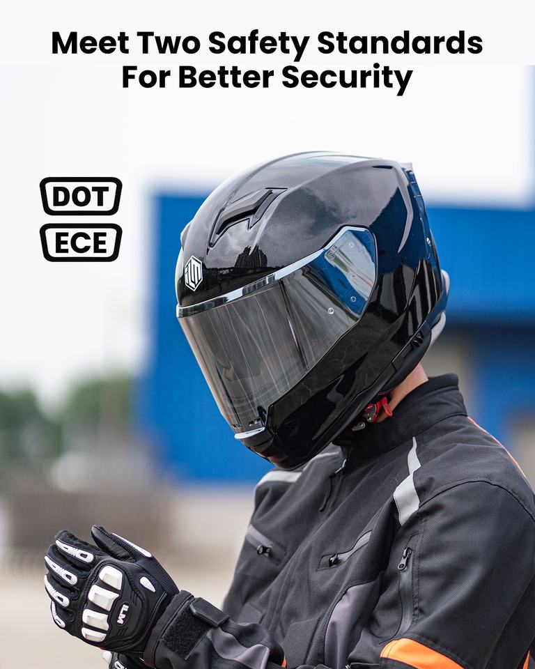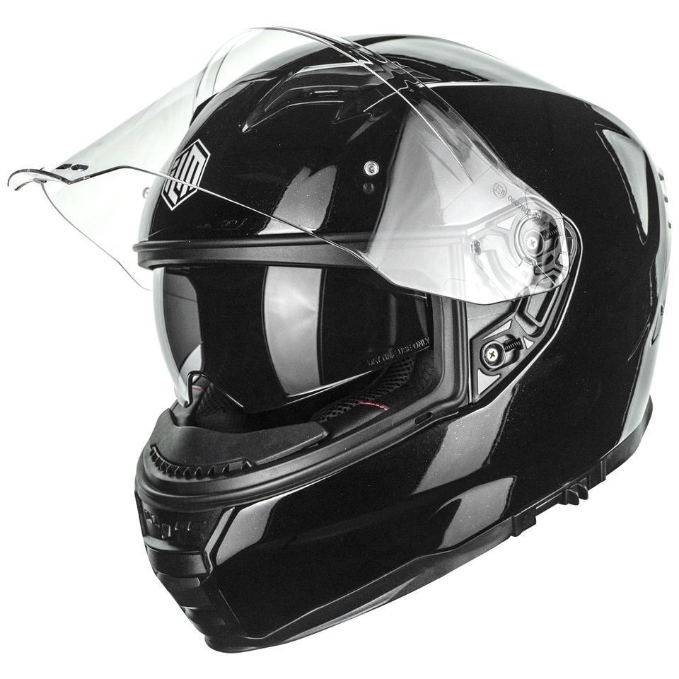 Nuovo Casco Integrale per Moto ILM Nero Lucido con Sgancio Rapido, Doppia Visiera, in ABS e Fibra di Vetro, Certificato DOT ECE, Leggero, per Tutte le Stagioni, da Uomo