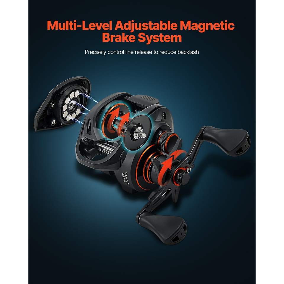 Combo Canna e Mulinello in Fibra di Carbonio IM7, Sistema 7+1 BB, Rapporto di Trasmissione 7.0:1 per Pesca al Bass