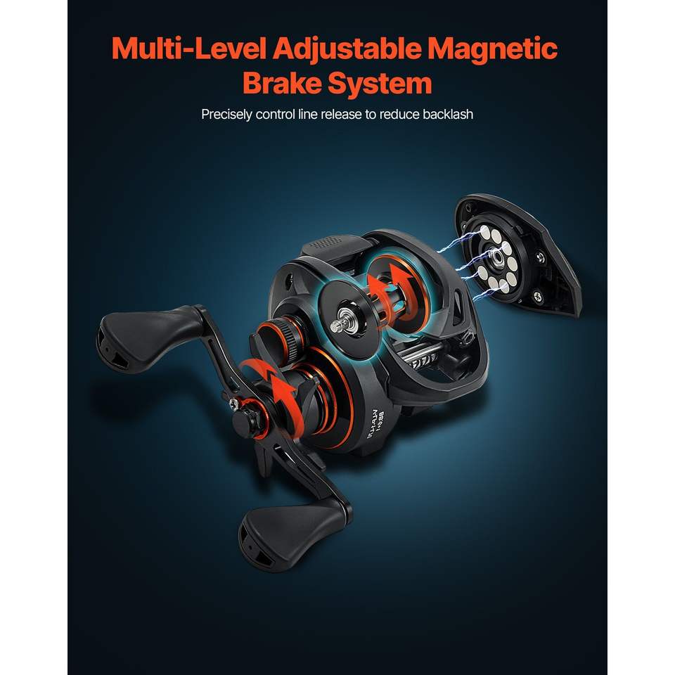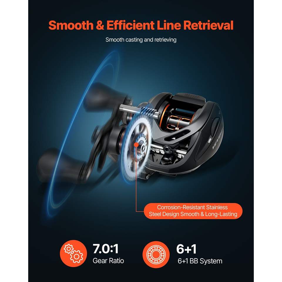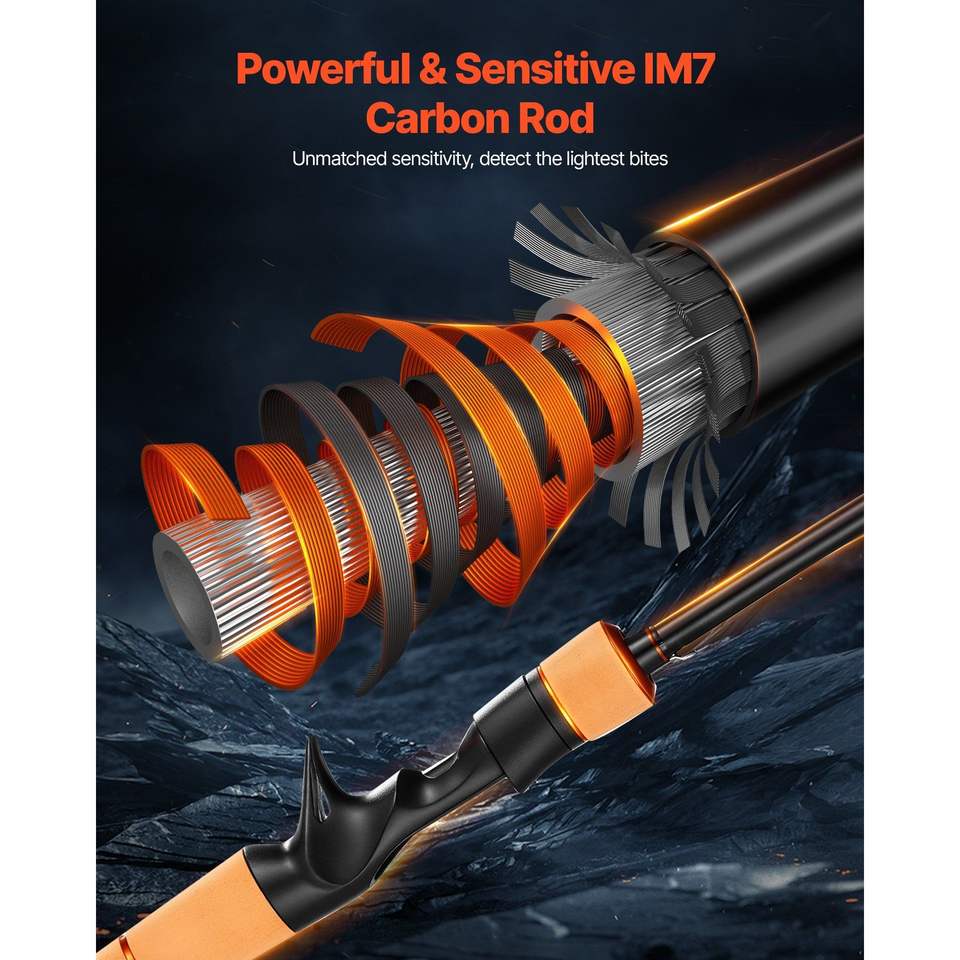 Canna e Mulinello da Baitcasting in Fibra di Carbonio IM7 con Sistema 6+1 BB, Canna da Pesca per Bass con Rapporto di Trasmissione 7.0:1
