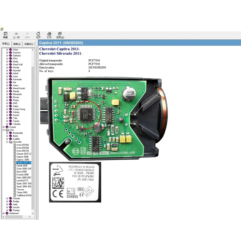 Software Localizzazione EEPROM per Disattivazione IMMO Mostra Dati Transponder Originali Consentiti per Programmatori di Chiavi Database Disattivazione IMMO