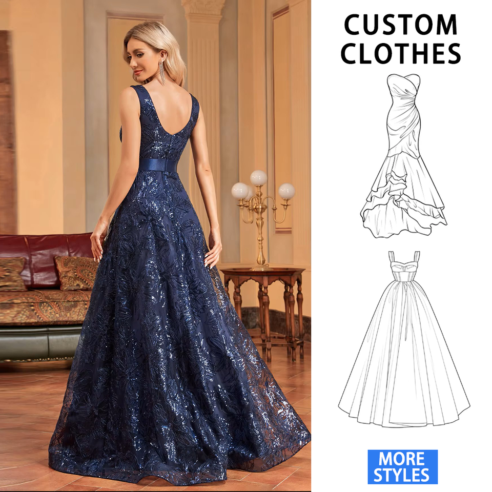 IMPEREAL Hot Sale Luxury Sexy V-Neck Sequins Evening Dress Clothes Women Elegant V-back Bridesmaid Party Dress Long Prom Gowns