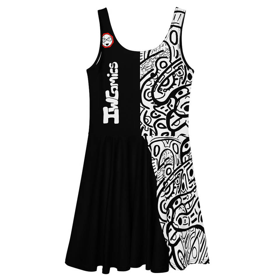IMPOSSIBLE Abito Vintage Stile Skater, Lunghezza al Polpaccio, Svasato, con Logo Personalizzato, Applicazioni Floreali, Balze, Tinta Unita, Taglie XS-3XL