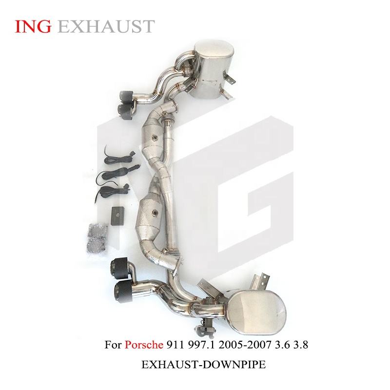 ING Exhaust Pipes for 2005-2007 Porsche 911 997 3.6 3.8 Carrera Targa 4 4S Stainless Steel Exhaust with Valves Car Accessories