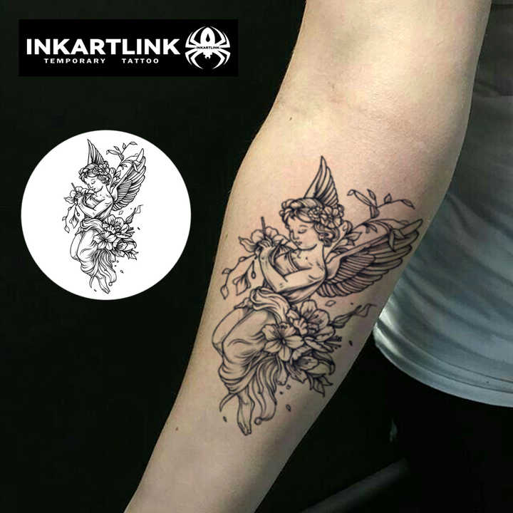 INKARTLINK Vintage Angel Tattoo Sticker Cherub Lily Flower Wing Sketch Herbal 15 Days Semi-permanent Body Art Arm Wholesale