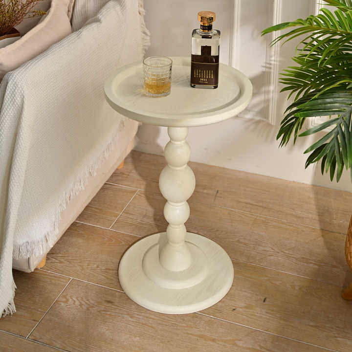 INNOVA European Style Living Room Coffee Table Furniture White Round Wood Side Table with One Leg