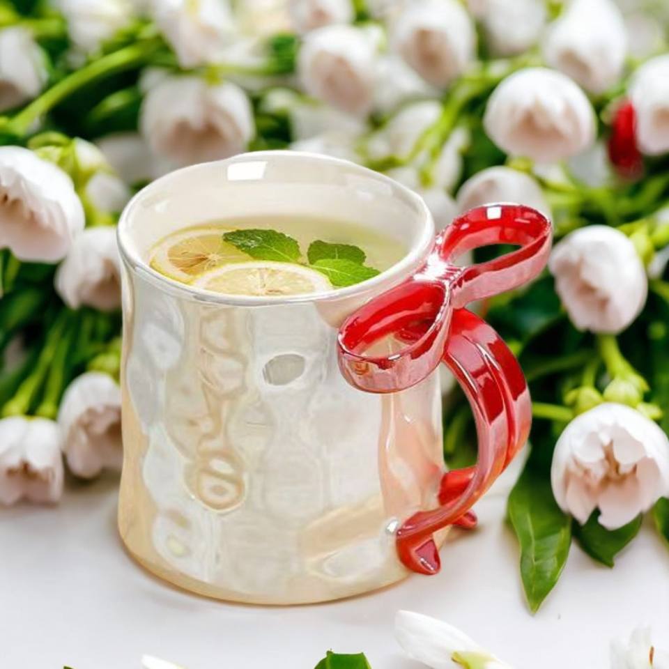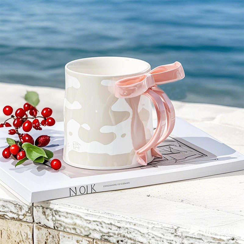 Tazza in Ceramica con Manico a Fiocco INS, Resistente alle Alte Temperature, Carina e Femminile, per Studenti, Caffè e Latte